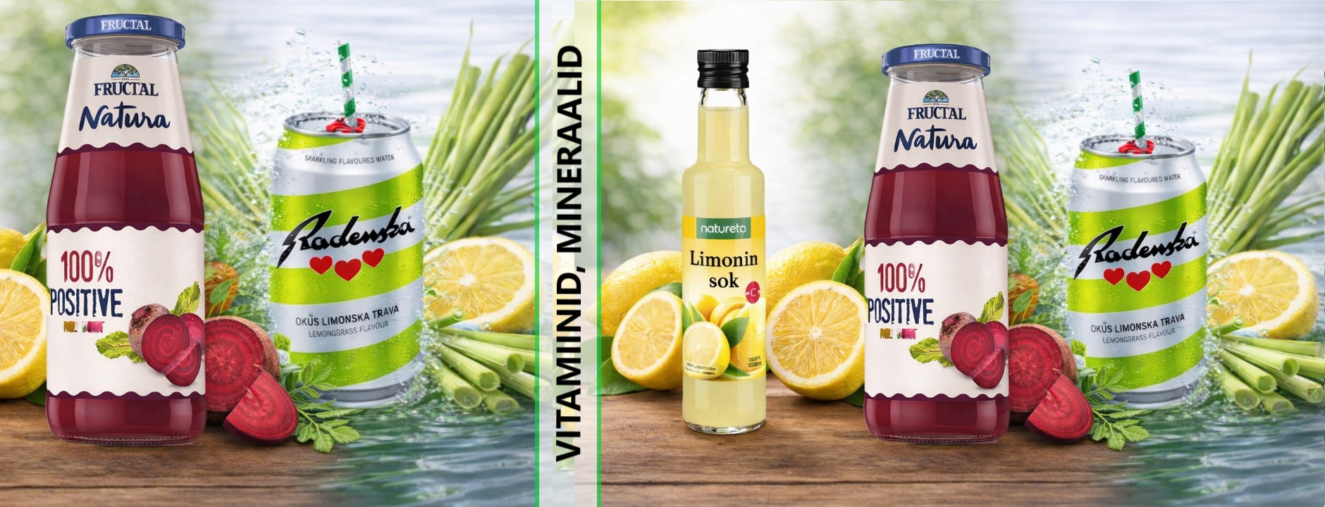 100% sidrunimahl, 100% positiivne peedimahl, 100% tervislik mineraalvesi